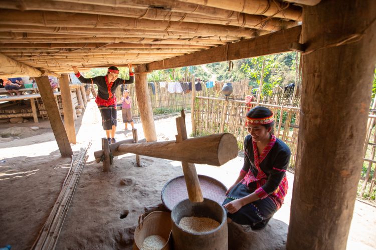 Then trek 2 km to look at bamboo housing in Ban Lai Village.